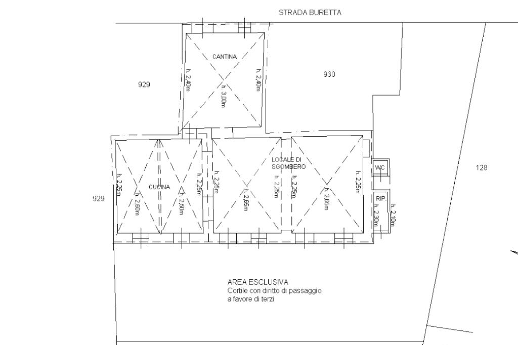 Al piano terra si trovano i locali di sgombero ad uso cantina, con una canna fumaria da rivedere. L’accesso al piano primo avviene attualmente tramite una scala a pioli che porta al balcone, in quanto non è presente un collegamento interno tra i due livelli.