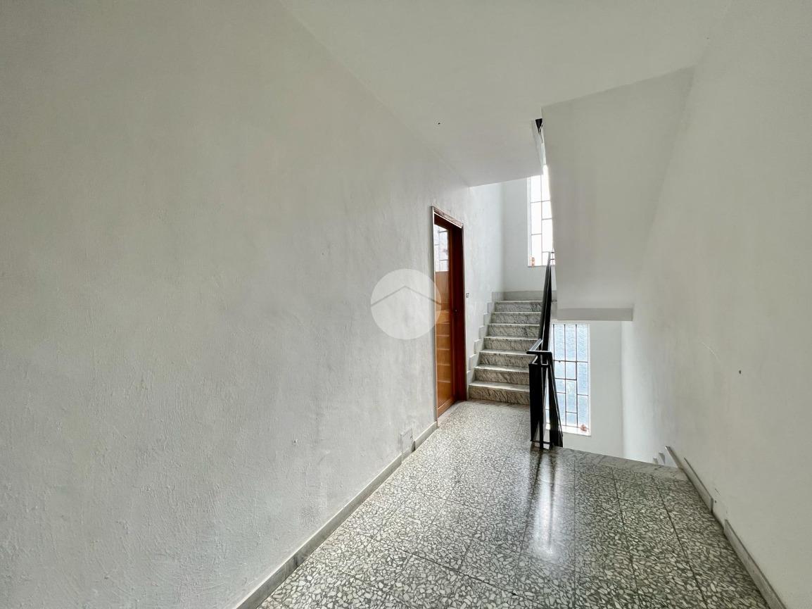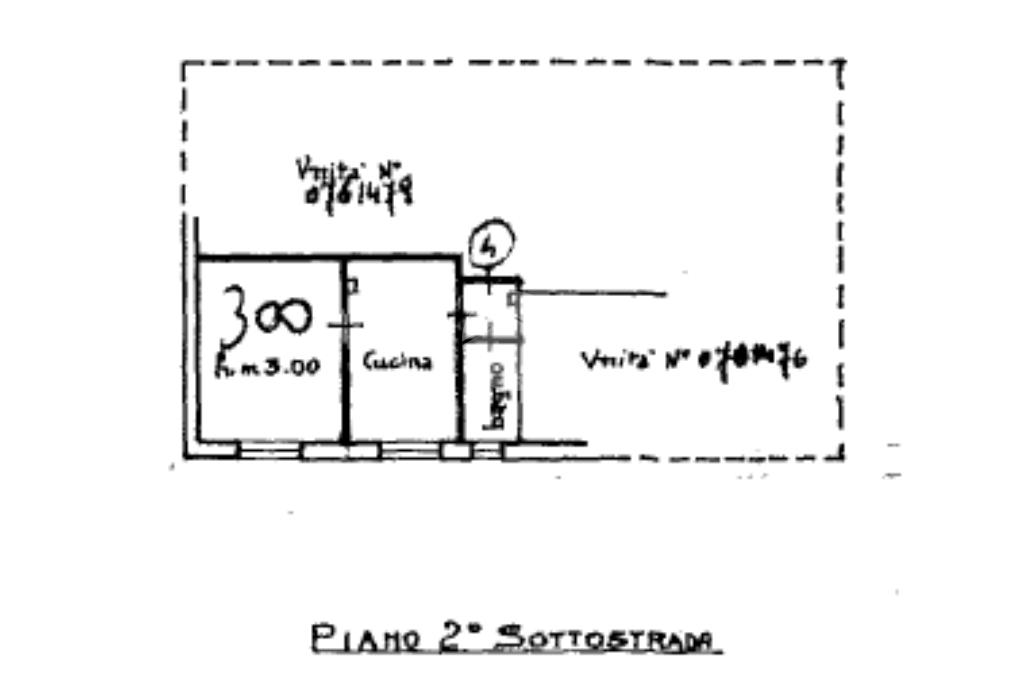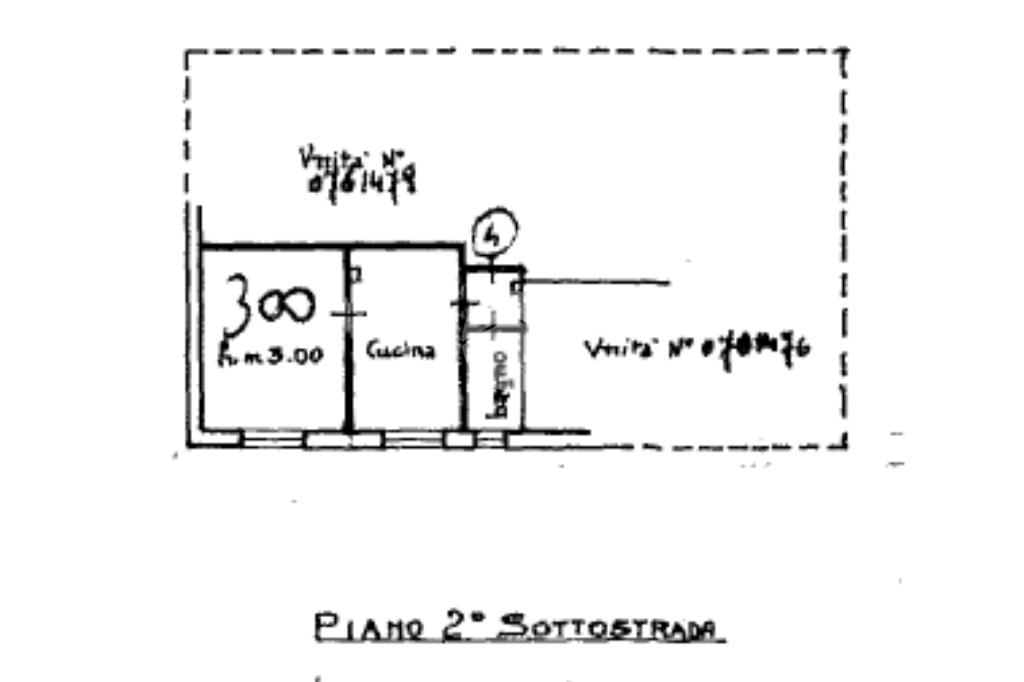 L’accesso al condominio avviene attraverso 6 gradini e poi si scende di due piani, l’immobile viene così suddiviso : un piccolo disimpegno che collega il bagno e altri due ambienti.